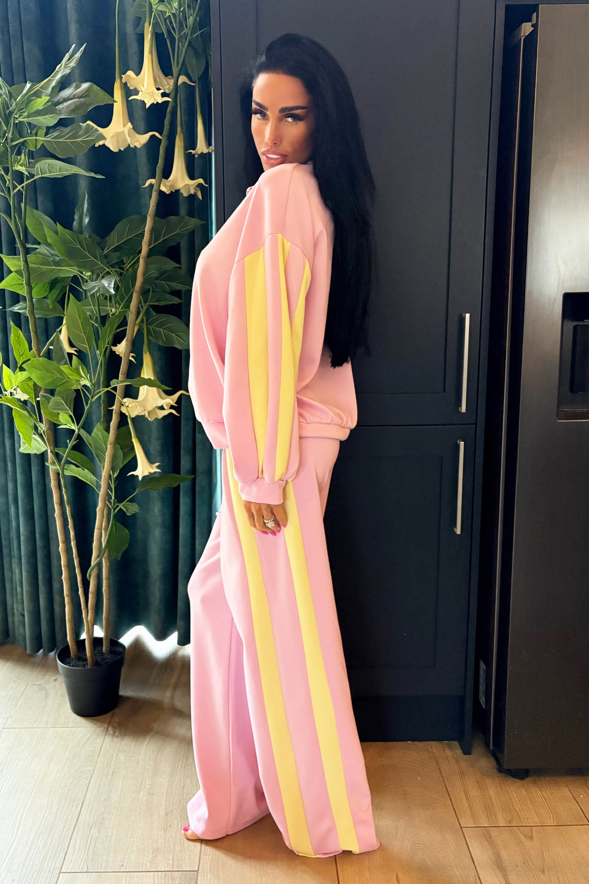 Contrast Double Stripe Tracksuit - Pink/Yellow